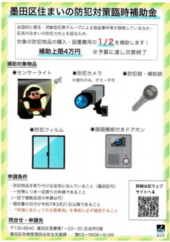 掲示板2025年9月11防犯対策臨時補助金のお知らせ